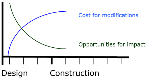 Up-front visualisation and goal setting are critical, for as the project progresses and building materials are chosen opportunities to make effective changes decrease while costs and inconvenience increase. This is not optimal.